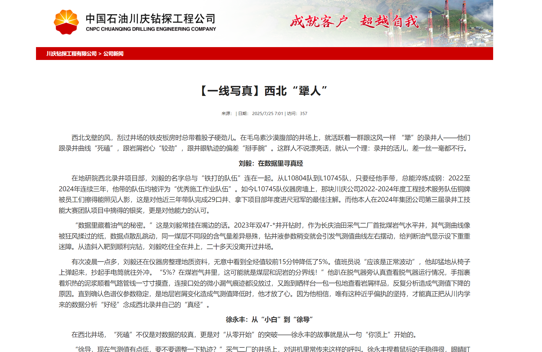 在西北井场,“死磕”不仅是对数据的较真,更是对“从零开始”的突破——徐永丰的故事就是从一句“你顶上”开始的。