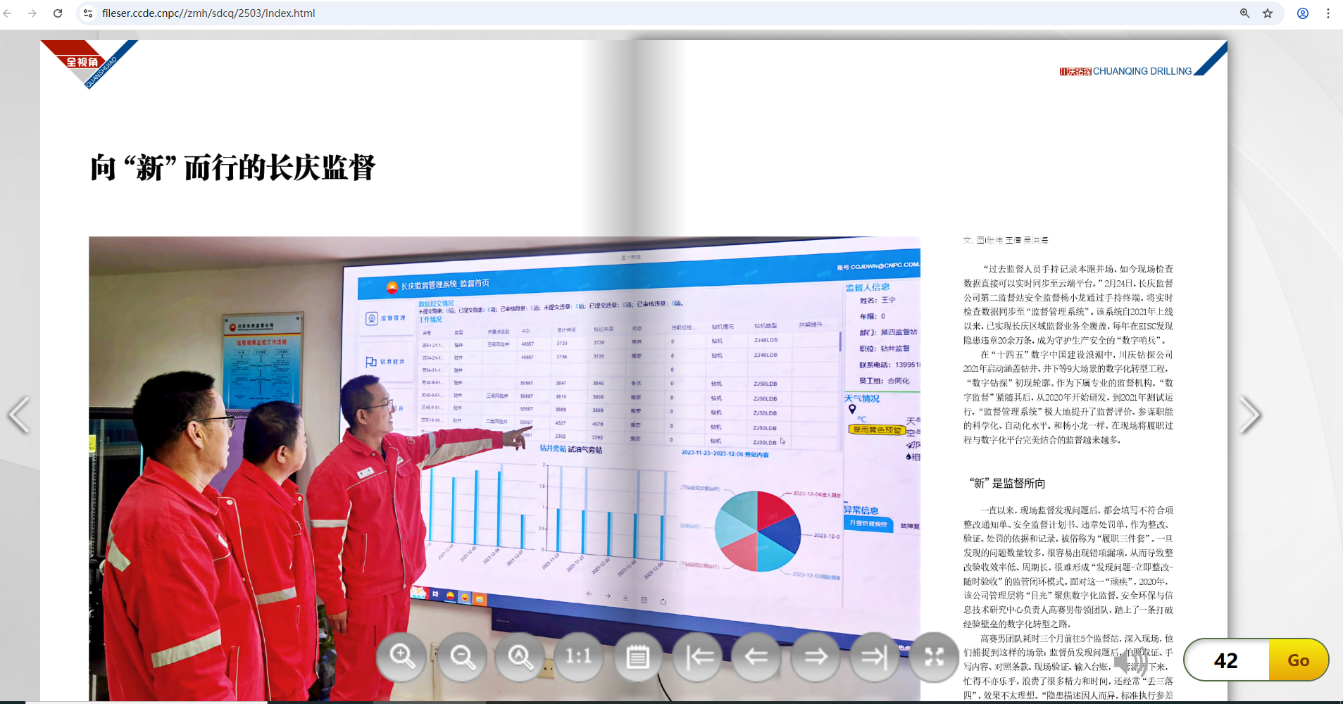 在“十四五”数字中国建设浪潮中,川庆钻探公司2021年启动涵盖钻井、井下等9大场景的数字化转型工程,“数字钻探”初现轮廓。作为下属专业的监督机构,“数字监督”紧随其后,从2020年开始研发,到2021年测试运行,“监督管理系统”极大地提升了监督评价、参谋职能的科学化、自动化水平。和杨小龙一样,在现场将履职过程与数字化平台完美结合的监督越来越多。