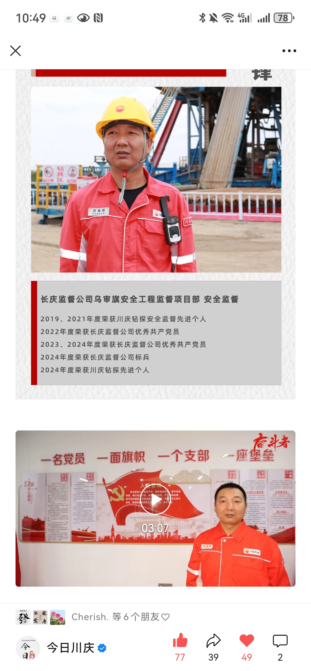 本视频为 3 分钟人物纪实短片,聚焦川庆公司 2024 年度先进个人、长庆监督公司乌审旗安全工程监督项目部安全监督郭雄锋。影片采用 “人物采访 + 现场履职实拍 + 空镜头穿插” 的多元拍摄手法,生动捕捉他在钻井一线开展安全监督、筑牢安全防线的真实场景。视频中,郭雄锋结合自身从钻井队场地工到机械工长的 13 年一线积淀,以及 10年安全监督工作经验,深入剖析行业复杂动态风险应对、新技术新设备适配等工作难点,阐释 “安全优先、以安全促生产” 的核心理念,分享通过真实案例沟通化解作业人员顾虑、推动安全措施落地的实践智慧,充分展现了优秀安全监督 “软硬兼施强专业、事前预防除隐患” 的责任担当,全方位彰显其 “驻一支井队,保一方平安” 的初心使命与坚守。(长庆监督公司/王倩)