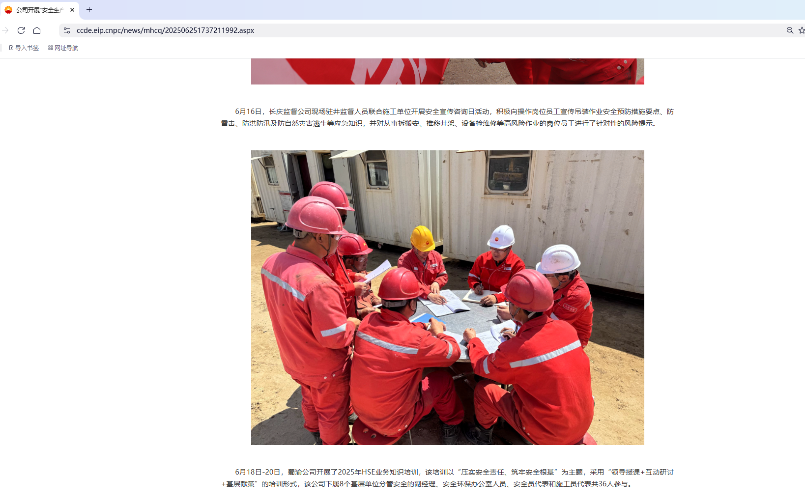 6月16日,长庆监督公司现场驻井监督人员联合施工单位开展安全宣传咨询日活动,积极向操作岗位员工宣传吊装作业安全预防措施要点、防雷击、防洪防汛及防自然灾害逃生等应急知识,并对从事拆搬安、推移井架、设备检维修等高风险作业的岗位员工进行了针对性的风险提示。