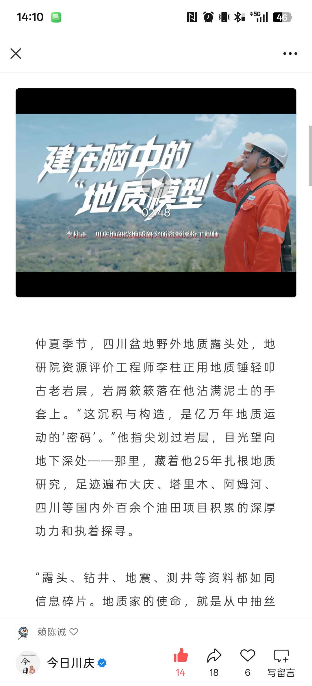 本片通过“实拍+AIGC动画”相结合的创新形式,生动展现了地质工程师李柱正二十五载潜心钻研、知行合一的职业历程。影片以“地质模型”为意象贯穿始终,既具象化地质研究的思维过程,又隐喻其严谨务实、开拓创新的精神内核。AIGC动画的巧妙运用,将抽象的地质构造与油气运移过程视觉化,增强了影片的科技感与艺术感染力,成功塑造了一位既有专业深度又有人文温度的地质科研工作者形象。