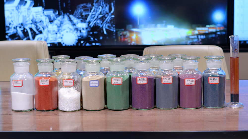 图七:采用环氧树脂等材料,在支撑剂表面用化学染料固化红、黄、蓝、绿、白、紫六种颜色,量化彩色支撑剂含量,精准判断取芯裂缝中支撑剂的来源、铺置形态及浓度。