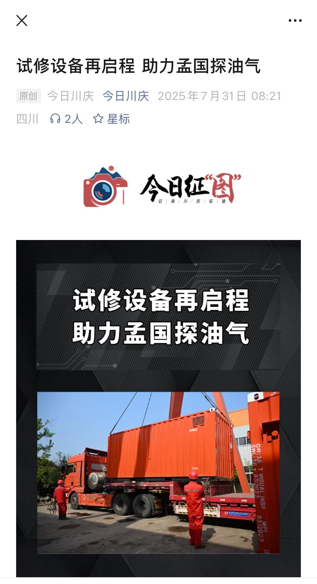聚焦试修公司为孟加拉项目做的各项准备,因其展现企业实力与市场开拓而重点采写。刊发后,“领先技术”“深厚积累”等亮点引发广泛讨论,试修公司紧跟川庆全球发展战略部署,持续推进孟加拉项目,微信推文获得热烈转载、评论、点赞。