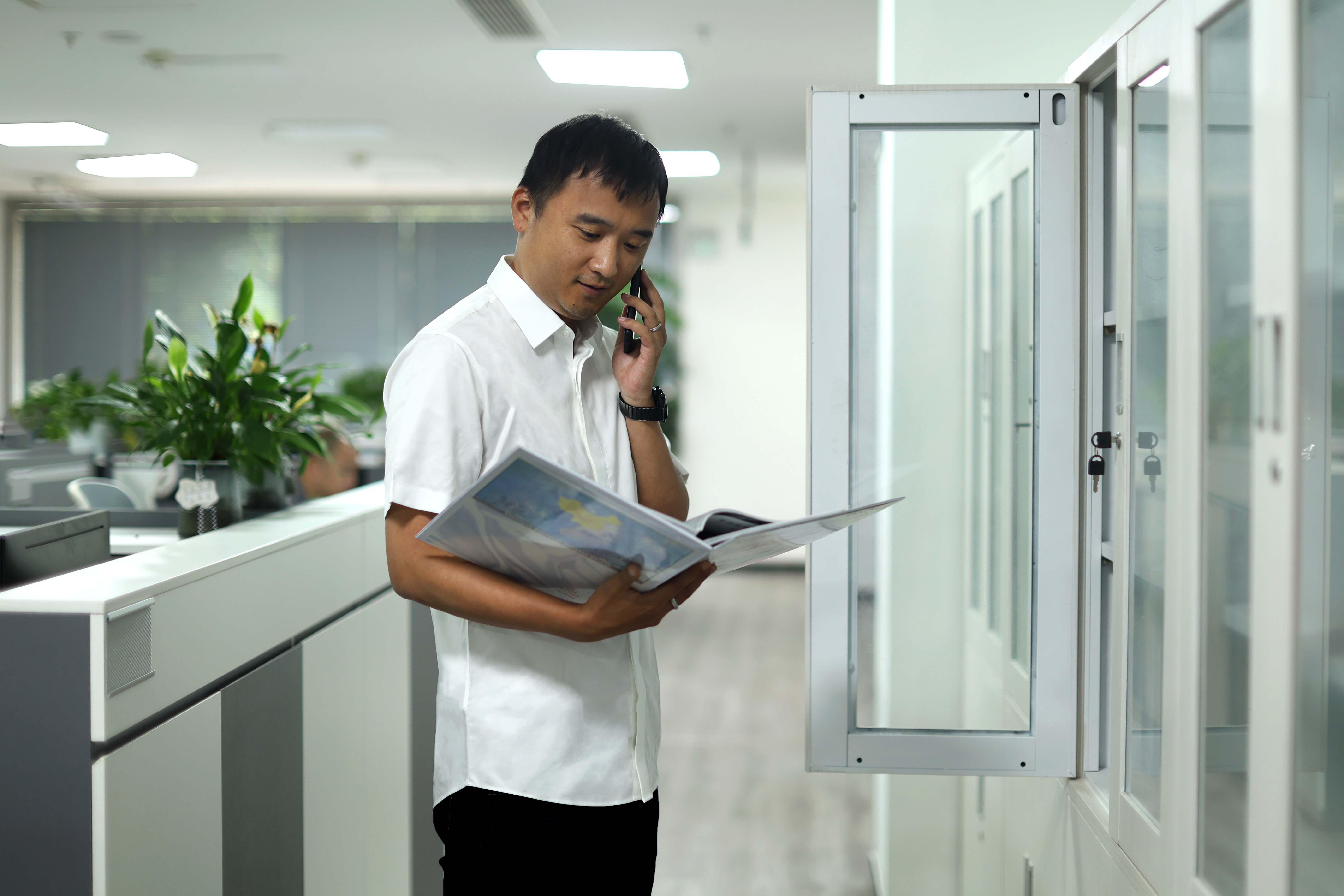 III级合同持有者郑浩正在和承包商打电话核对清单信息。