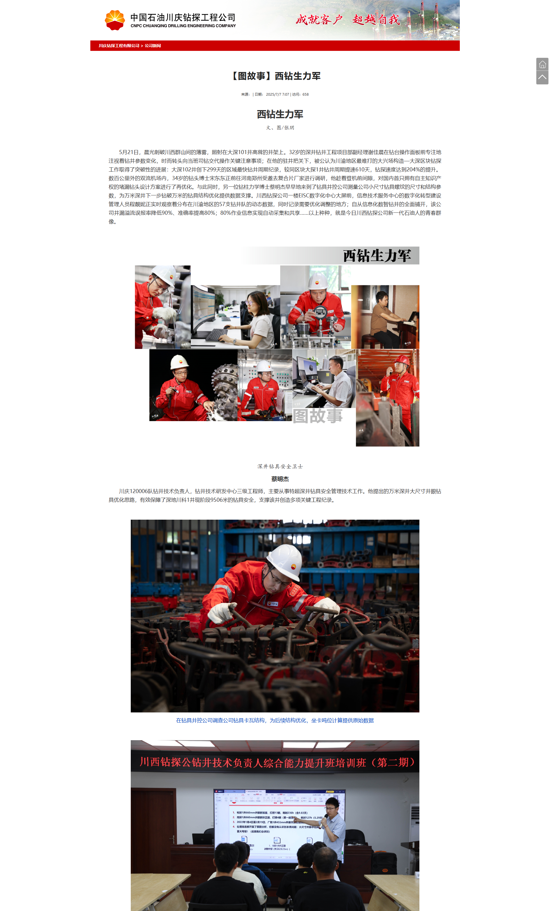 5月21日,晨光刺破川西群山间的薄雾,照射在大深101井高耸的井架上。32岁的深井钻井工程项目部副经理谢佳晨在钻台操作面板前专注地注视着钻井参数变化,时而转头向当班司钻交代操作关键注意事项;在他的驻井把关下,被公认为川渝地区最难打的大兴场构造—大深区块钻探工作取得了突破性的进展:大深102井创下299天的区域最快钻井周期纪录,较同区块大探1井钻井周期提速610天,钻探速度达到204%的提升。数百公里外的双流机场内,34岁的钻头博士宋东东正前往河南郑州受邀去复合片厂家进行调研,他趁着登机前间隙,对国内首只拥有自主知识产权的堵漏钻头设计方案进行了再优化。与此同时,另一位钻柱力学博士蔡明杰早早地来到了钻具井控公司测量公司小尺寸钻具螺纹的尺寸和结构参数,为万米深井下一步钻破万米的钻具结构优化提供数据支撑。川西钻探公司一楼EISC数字化中心大屏前,信息技术服务中心的数字化转型建设管理人员程靓妮正实时观察着分布在川渝地区的57支钻井队的动态数据,同时记录需要优化调整的地方;自从信息化数智钻井的全面铺开,该公司井漏溢流误报率降低90%、准确率提高80%;80%作业信息实现自动采集和共享……以上种种,就是今日川西钻探公司新一代石油人的青春群像。